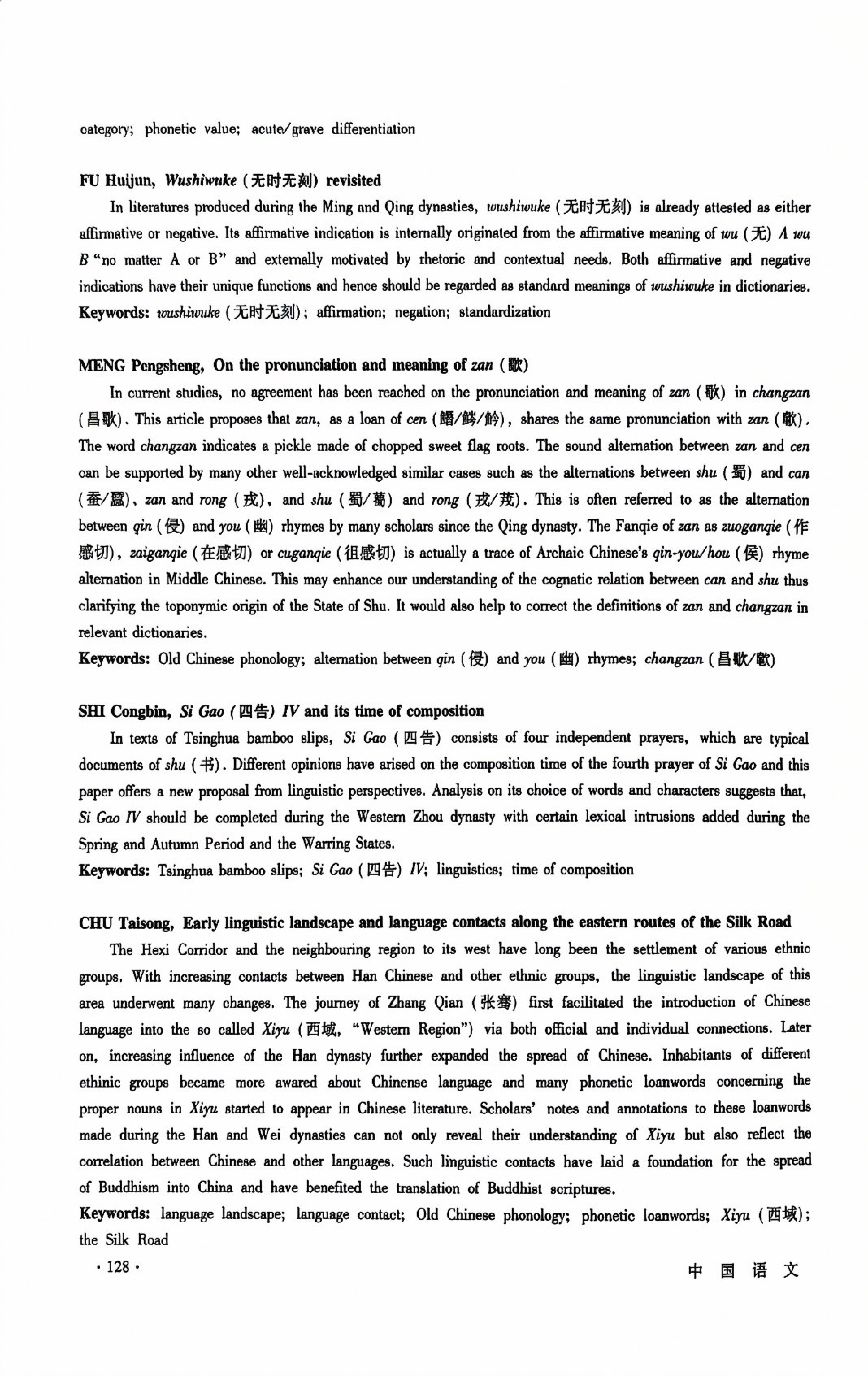 CHINESE JOURNAL OF PHONETICS