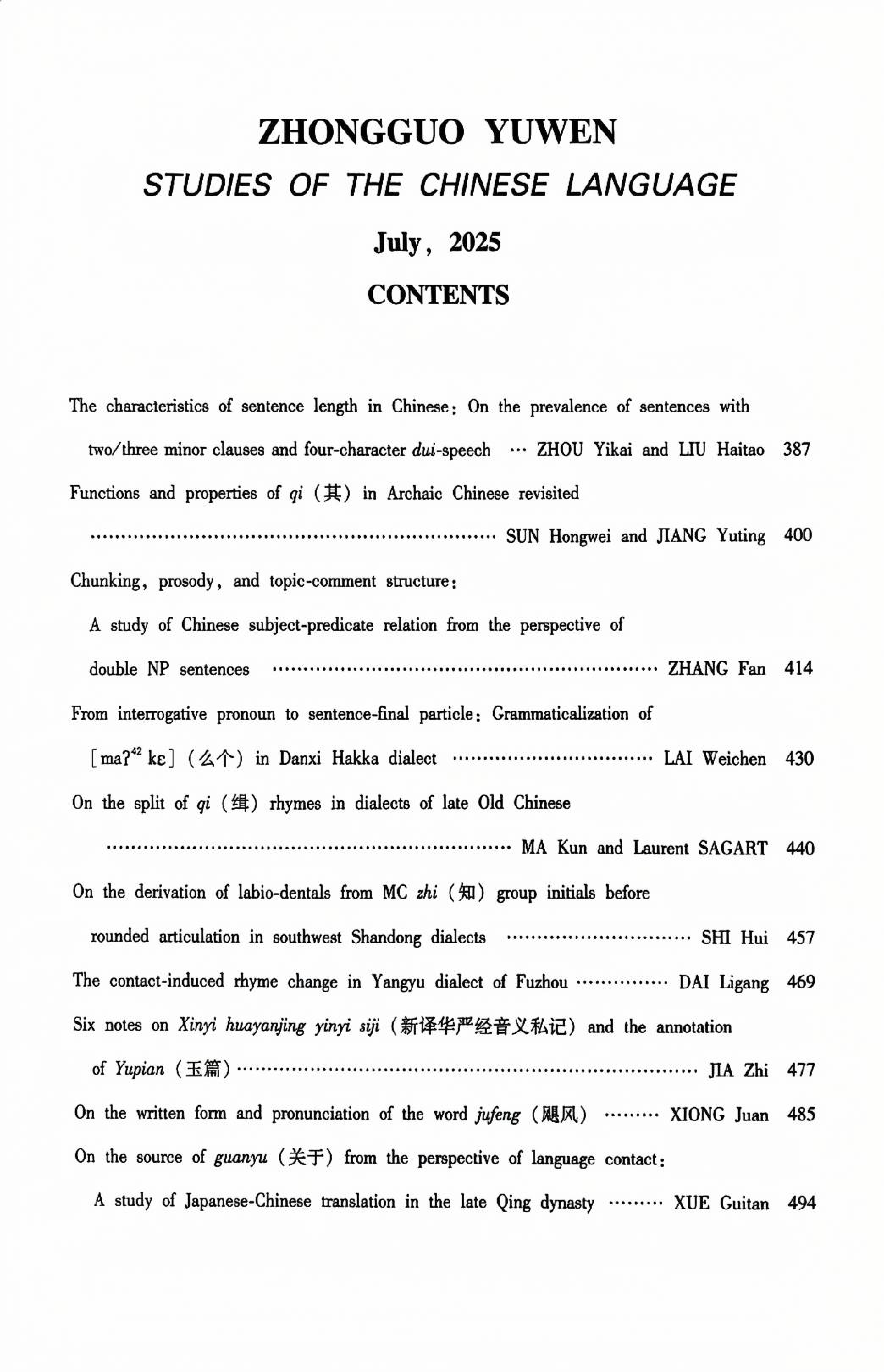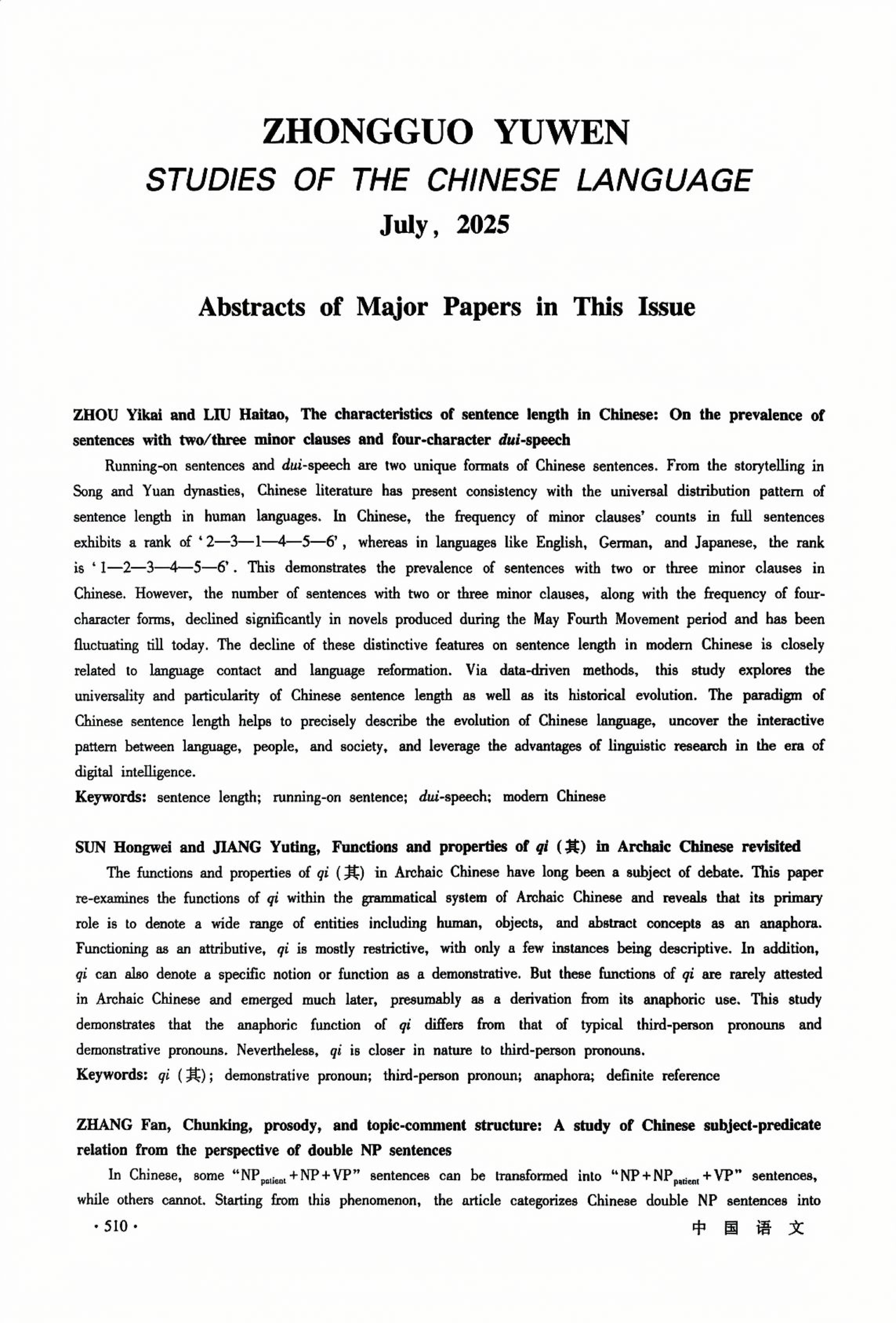 Contents and Abstracts ( No.4, 2025 )