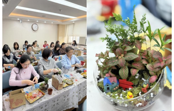 座谈会后,女职工们参加了绿色微景观手工制作活动。大家放松心情,亲近绿植,享受难得的轻松时光。