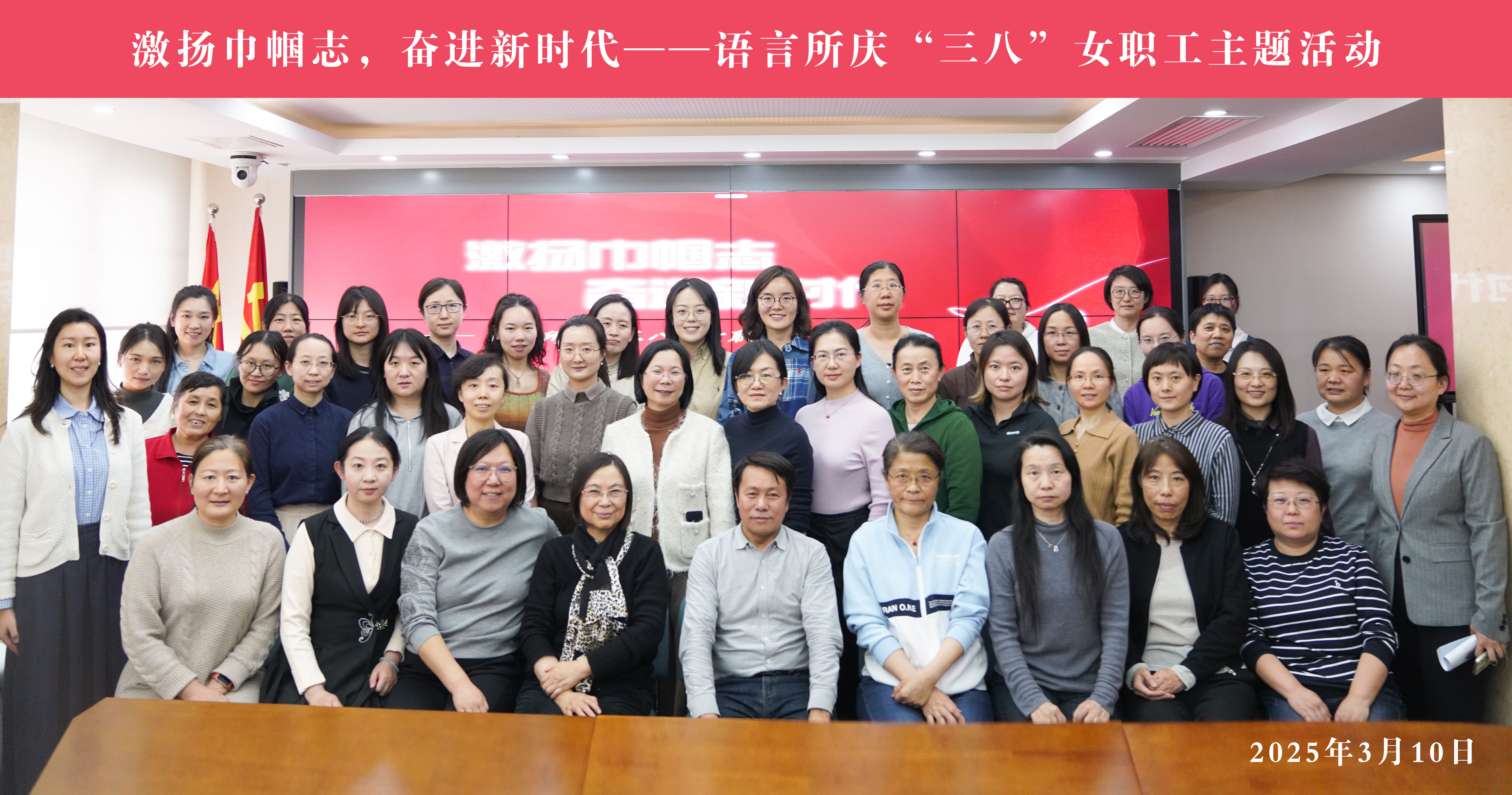 为庆祝2025年国际“三八”妇女节,团结动员语言所全体女职工为党和国家语言文字事业、为语言学“三大体系”建设贡献巾帼力量,语言所妇工委邀请全所女职工参加“激扬巾帼志 奋进新时代”为主题的女职工座谈会和绿色微景观制作活动。副所长王锋、李爱军同志参加了本次座谈。所党委书记余新华同志请王锋副所长转达对全体女职工的节日问候。