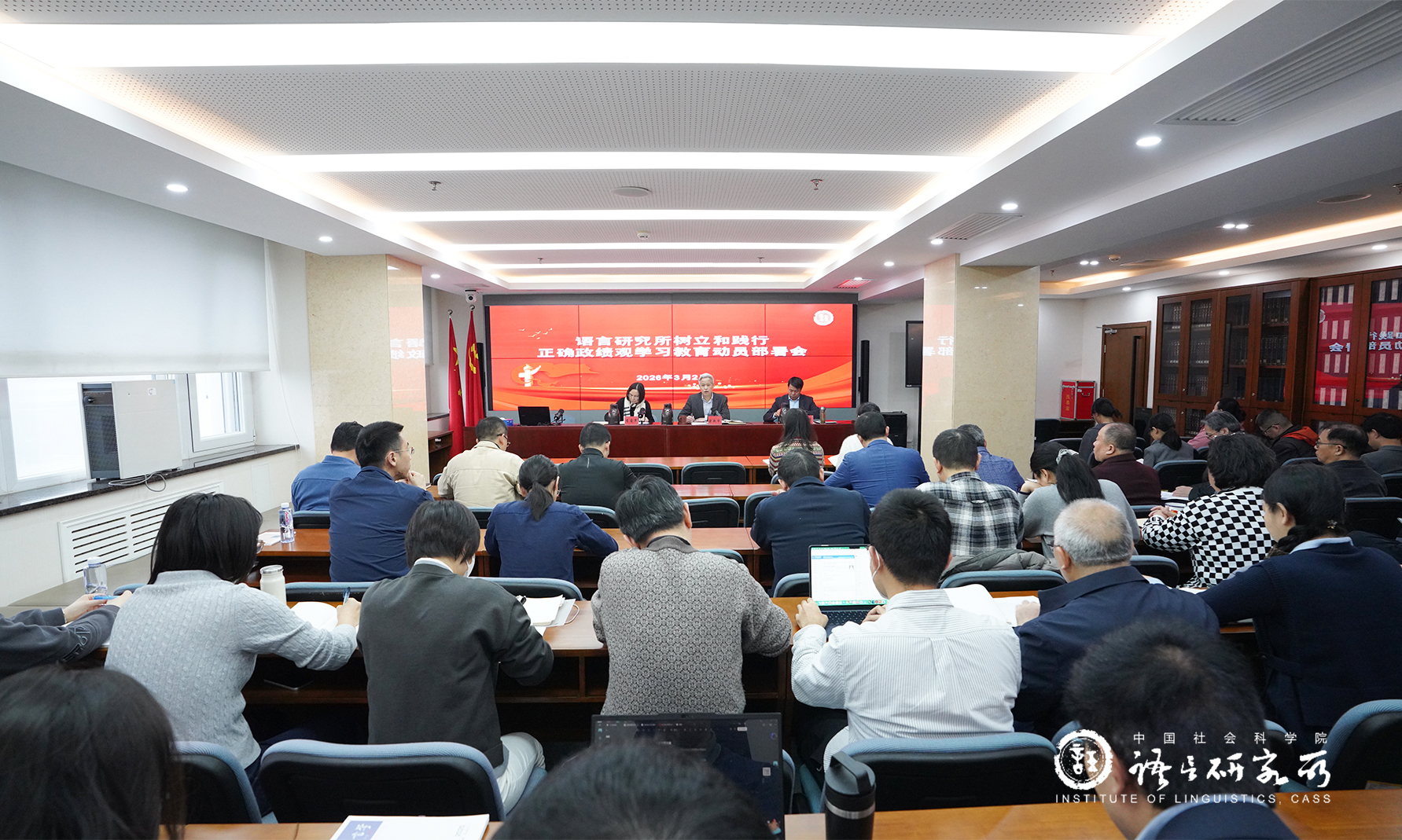 3月2日,语言研究所召开党员大会,传达学习中央党的建设工作领导小组会议精神和院党组扩大会议暨党的建设工作领导小组会议精神及院长、党组书记高翔同志在院党组扩大会议暨党的建设工作领导小组会议上的讲话精神,动员部署我所开展树立和践行正确政绩观学习教育工作。党委书记余新华同志主持会议,党委副书记、副所长王锋同志,纪委书记、副所长李爱军同志及全体党员参加会议。
