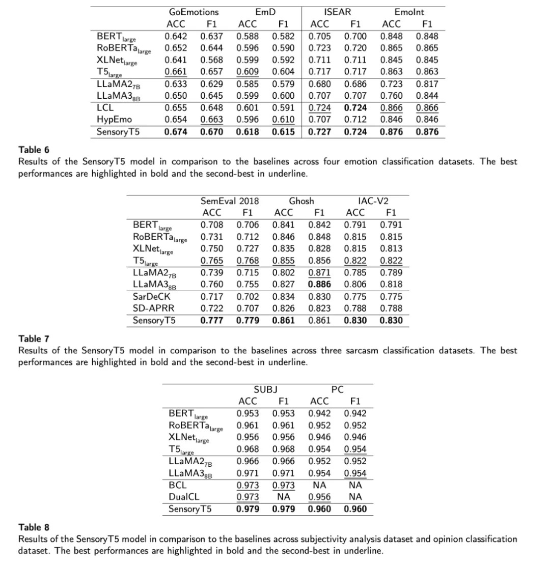 实验结果显示,SensoryT5在各类任务中均全面超越基线,达到最优效果。