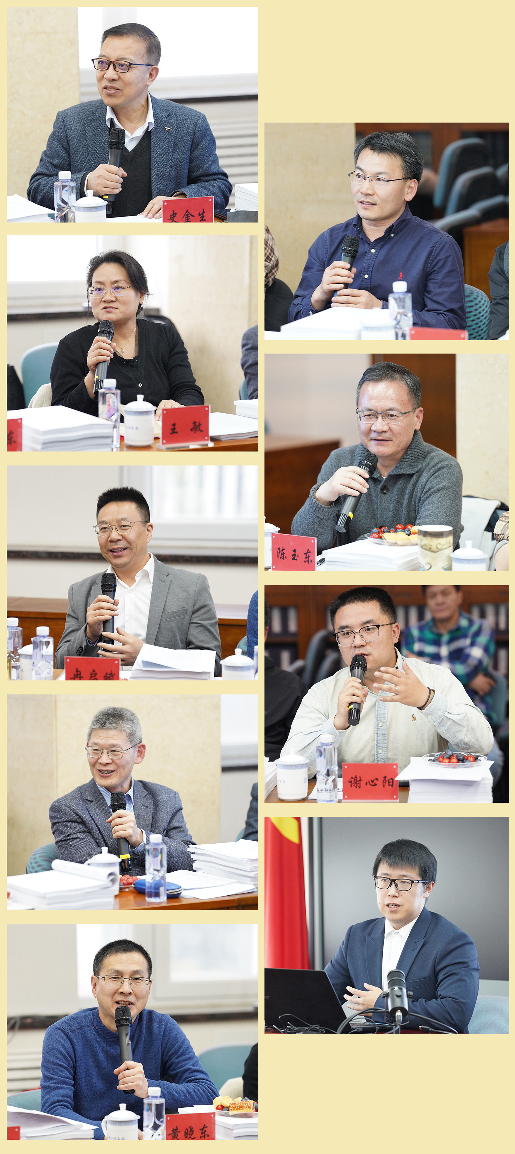 (左侧从上至下依次为:史金生、王敏、冉启斌、陈前瑞、黄晓东;右侧从上至下依次为:李先银、陈玉东、谢心阳、方迪)