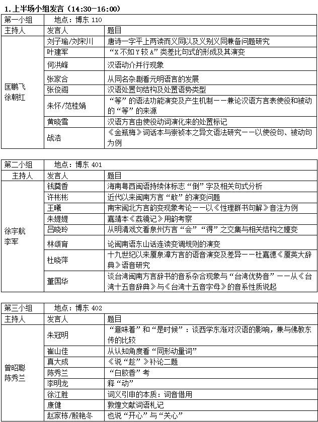 这次会议通过前期论文评审,最终将有120余名中外学者参加会议并发表演讲,可谓名家荟萃,新老咸集,济济一堂。参会者既有一些资深老一辈学者,又有一批长期从事历史语言学研究、闽语研究的著名中年学者,还有一批已经崭露头角的青年才俊。会议将设置四场大会报告,三组十二场分组报告。无论大会报告还是分组报告,都有可能新见迭出,异彩纷呈,值得期待。
