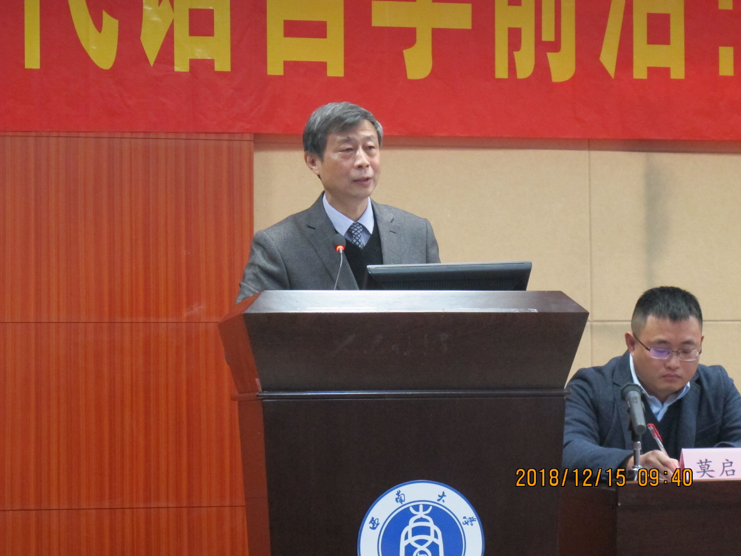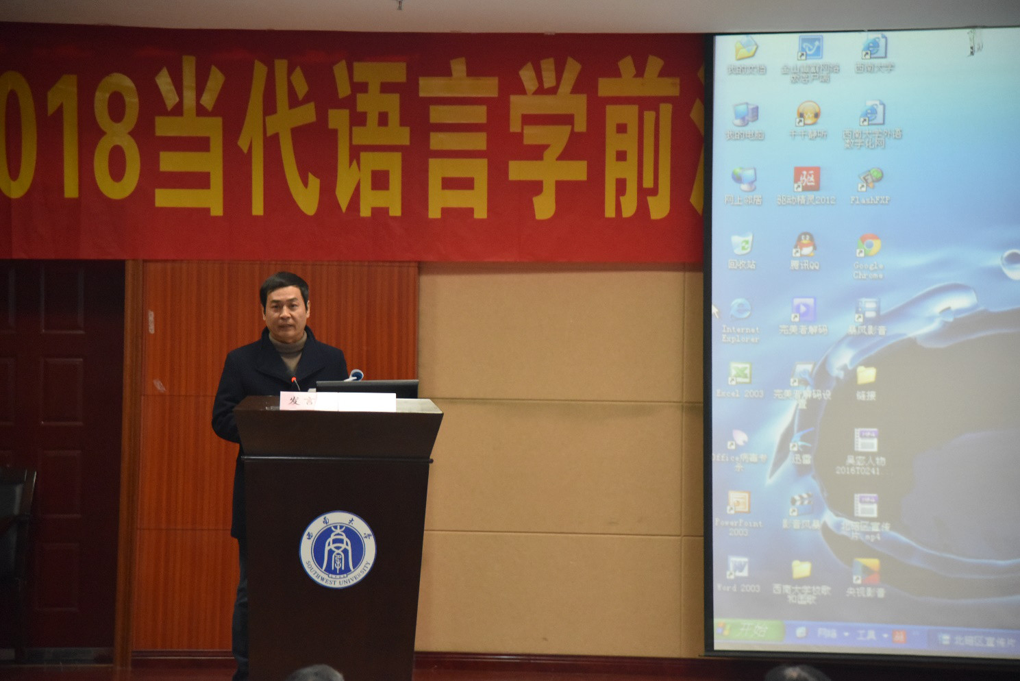 论坛开幕式由西南大学外国语学院副院长莫启扬教授主持,西南大学副校长崔延强教授代表西南大学致欢迎辞。中国社会科学院语言研究所所长刘丹青研究员,中国社会科学院语言研究所当代语言学研究室主任、《当代语言学》主编胡建华研究员分别致开幕辞。