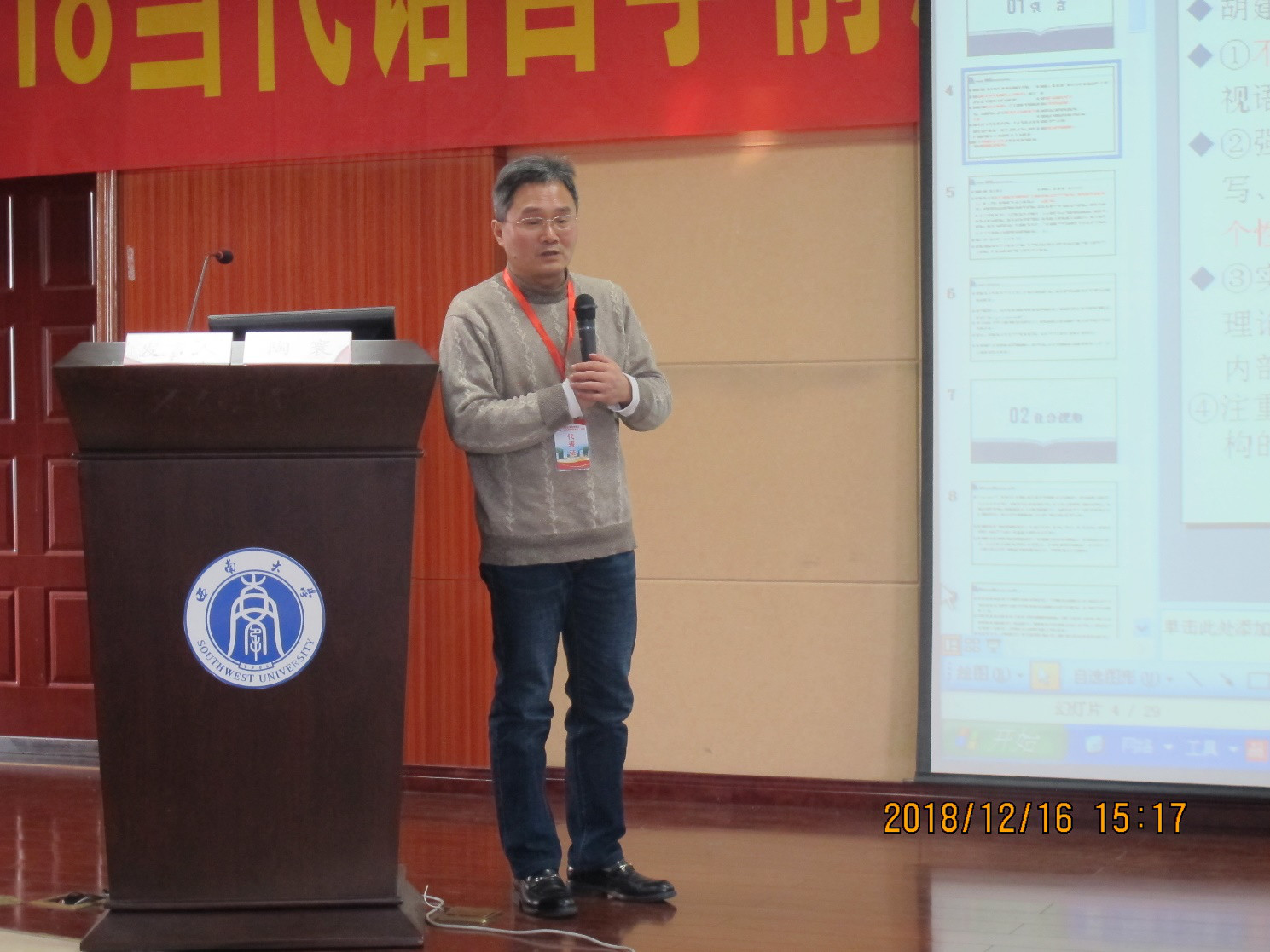会议闭幕式由西南大学外国语学院杜世洪教授主持,李行德教授做总结发言,胡建华研究员致闭幕辞。