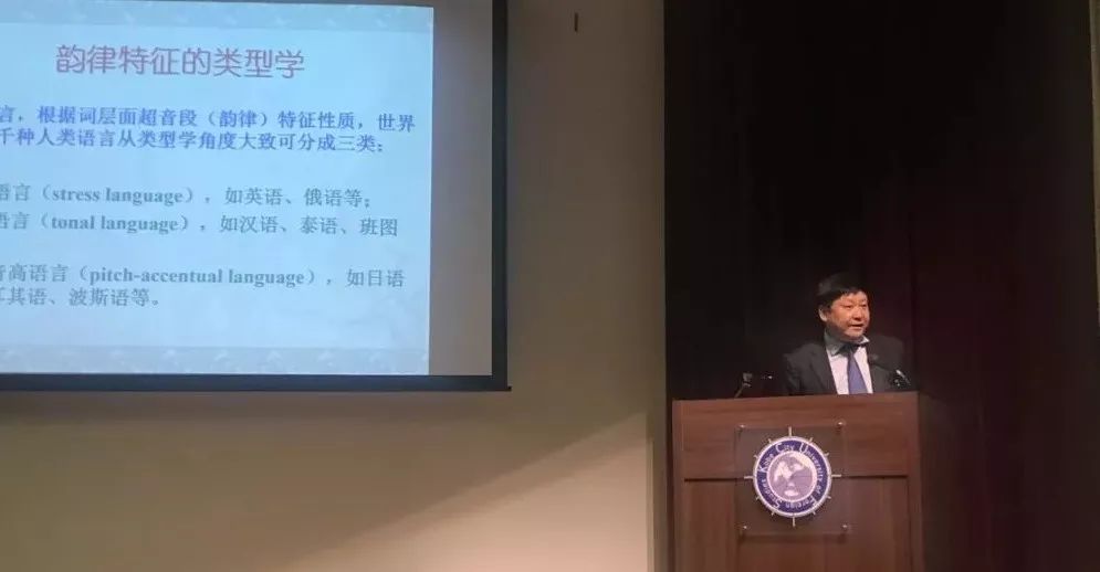 张洪明教授发表题为Features of Prosodic Patterns and Units of Prosodic Hierarchy的主旨演讲