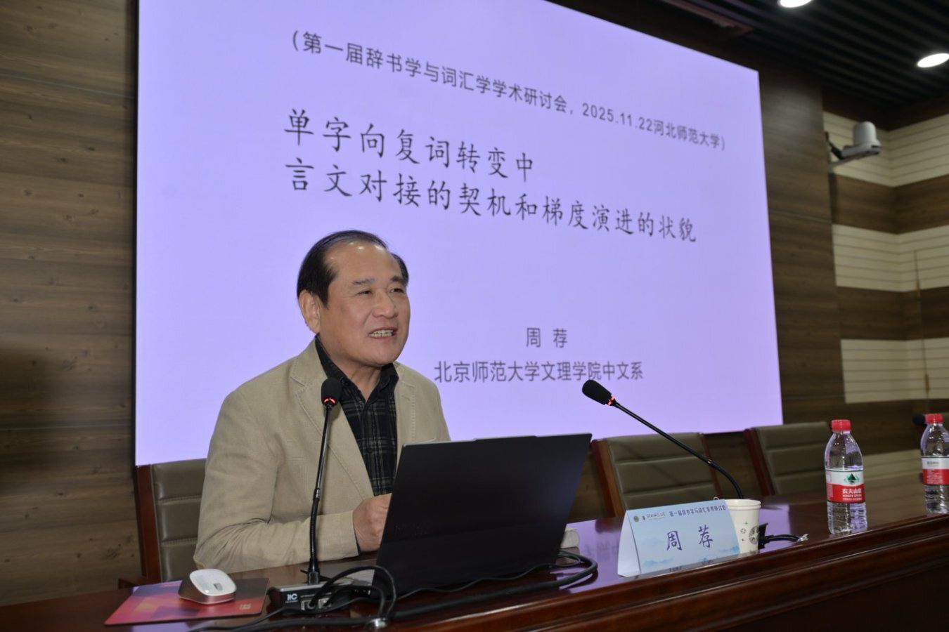 为深入学习贯彻习近平文化思想特别是习近平总书记关于语言文字工作重要论述精神,深刻认识和把握语文辞书事业在新时代语言文字事业中的重要地位和作用,2025年11月22日至23日,第一届辞书学与词汇学学术研讨会在河北师范大学举行。本次会议由中国社会科学院辞书编纂研究中心主办,中国社会科学院语言研究所《新华字典》编辑室、河北师范大学文学院承办,国家语言文字推广基地(河北师范大学)、河北省语言战略研究中心协办。会议以“语文辞书与文化传承发展”为主题,以辞书学和词汇学的结合为立足点,彰显语言文字基础理论与实践工作的相互支撑和融合发展。来自全国高校、科研院所、出版和民族语文翻译机构的近50位专家学者参加了会议。