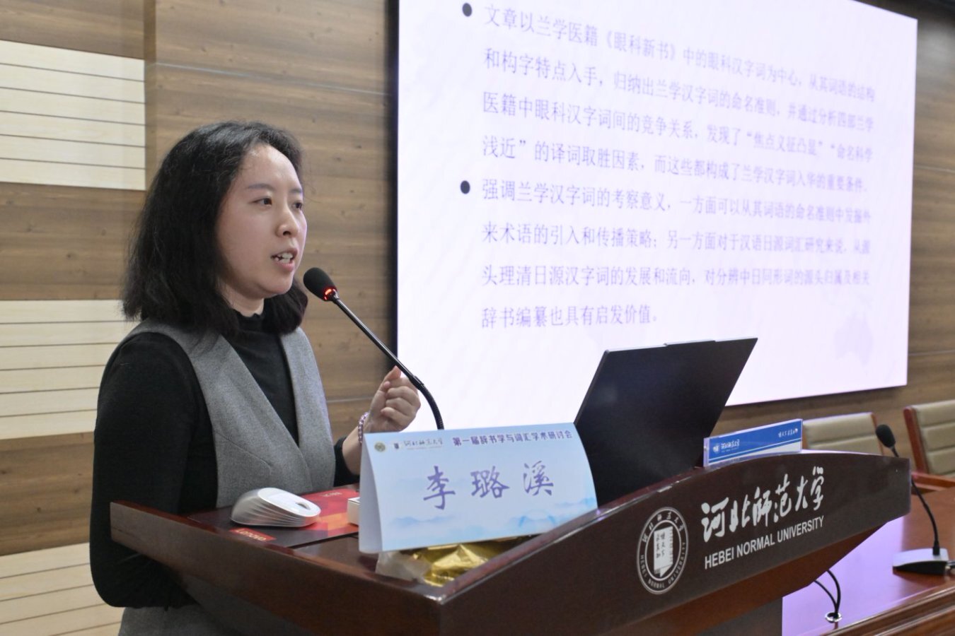 相关报告还有常广宇“涉分化字双音词与词典编纂”、邓婕“《湖南泸溪方言词典》有关‘中草药’的词汇”、李冬鸽“从工具书中的‘字源’‘字原’说开去”、李娜“基于多维视角的近代汉语科举语义场词汇生命力研究”、荀经纬“NV比喻词的词汇化研究——兼谈辞书中NV比喻词的选词立目”、张娟“动态视角下属性词特点分析及词典处理”、郑福多“非极性形容词的无标记化——以‘温度’为例”等。