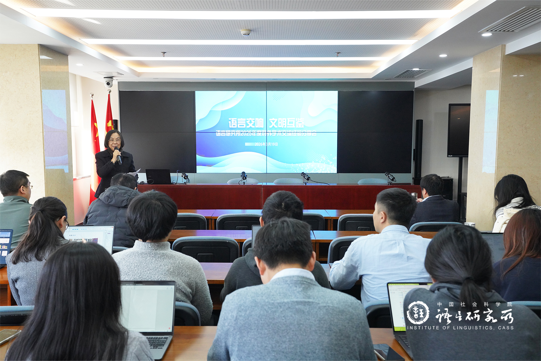 中国社会科学院语言研究所历来重视对外学术交流及青年人才培养工作,自2024年以来,每年举行对外学术交流经验分享会,邀请该年度赴国(境)外参加重要学术会议及培训、进行学术访问的青年学者代表,介绍国际语言学学术发展动态及对外学术交流相关经验,以交流总结促进对外学术交流工作及青年人才成长。3月19日上午,2025年度对外学术交流经验分享会成功举行。本次会议共有4名青年学者作了经验分享,40余名青年科研人员、博士后参加会议。会议由纪委书记、副所长李爱军研究员主持,党委副书记、副所长王锋研究员出席会议并作总结。
