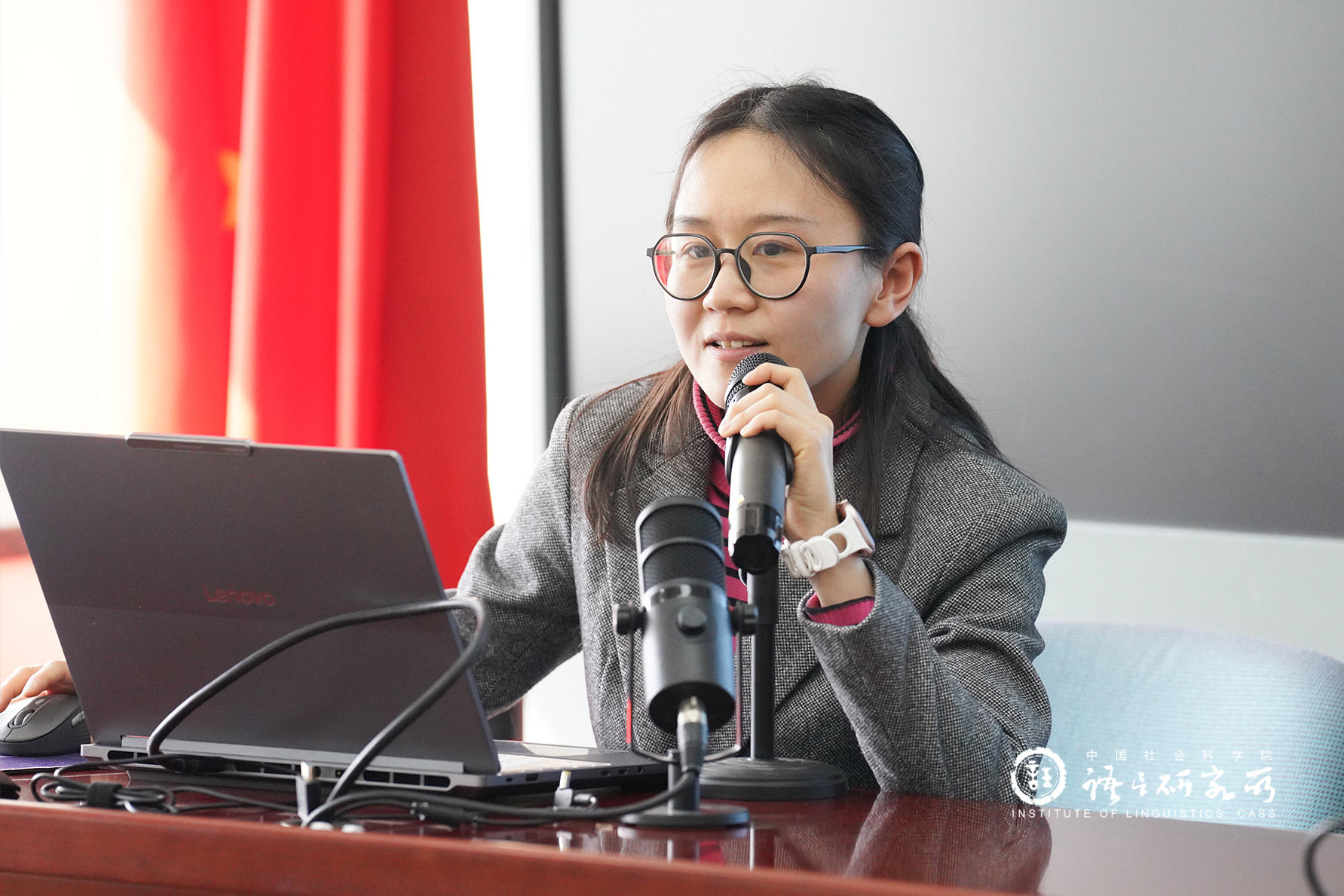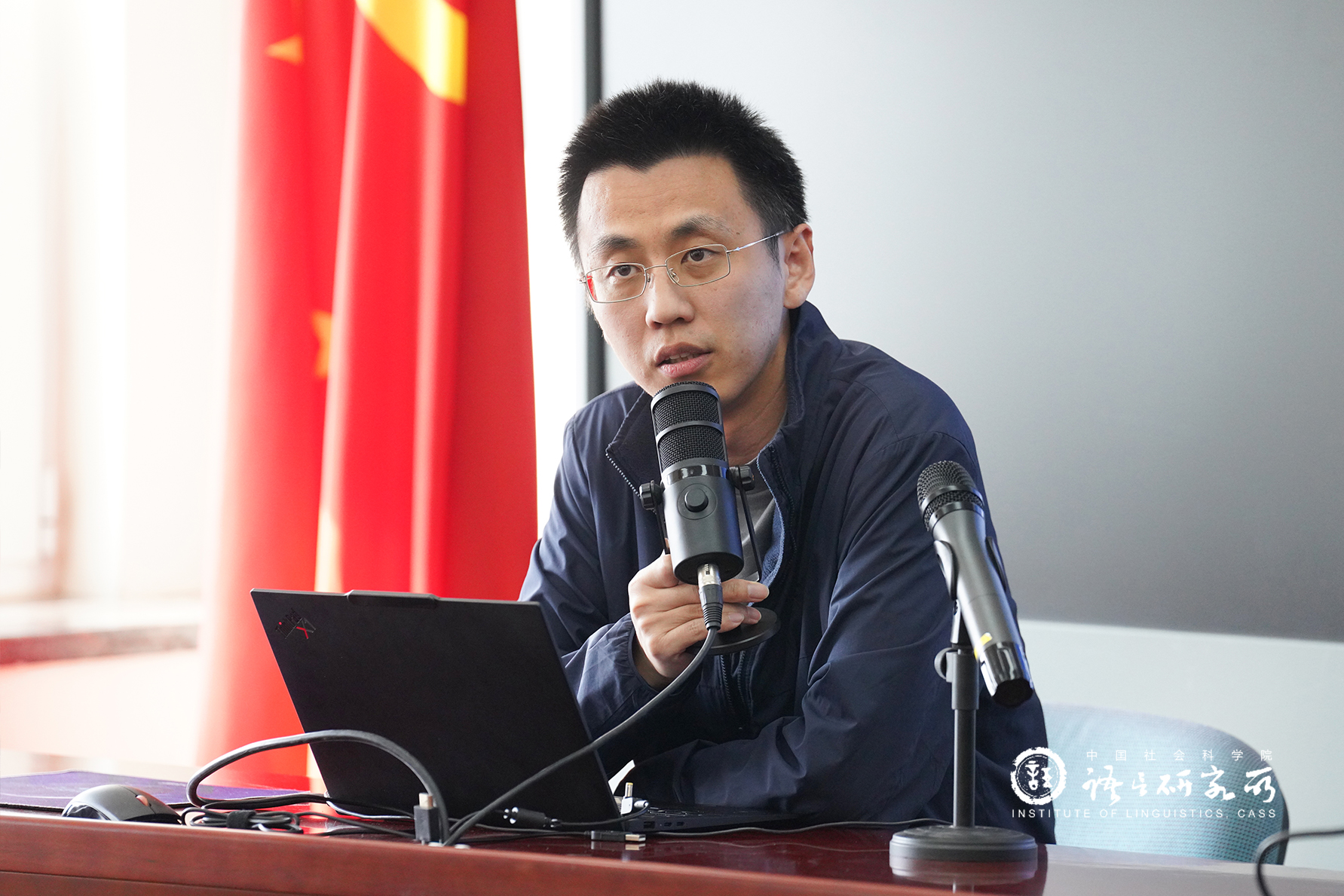 王锋副所长在总结中对会议的形式和主题给予充分肯定,认为可在田野调查、返乡调研等工作领域推广。他鼓励全所人员牢牢抓住“两镇一平台”建设机遇,积极开展对外学术交流。他进一步讲到,在世界百年未有之大变局的大背景下开展对外学术交流工作,要统筹发展与安全两个方面,既要考虑语言学学科发展,在习近平文化思想指导下加快构建中国语言学自主知识体系,推动中国语言学学术走出去,也要增强安全意识,牢固树立保密意识和意识形态安全意识,在确保国家语言文化安全的前提下开展对外学术交流,“走出去”与“请进来”并举,为实施国家文化战略贡献“国家队”的智慧和力量。