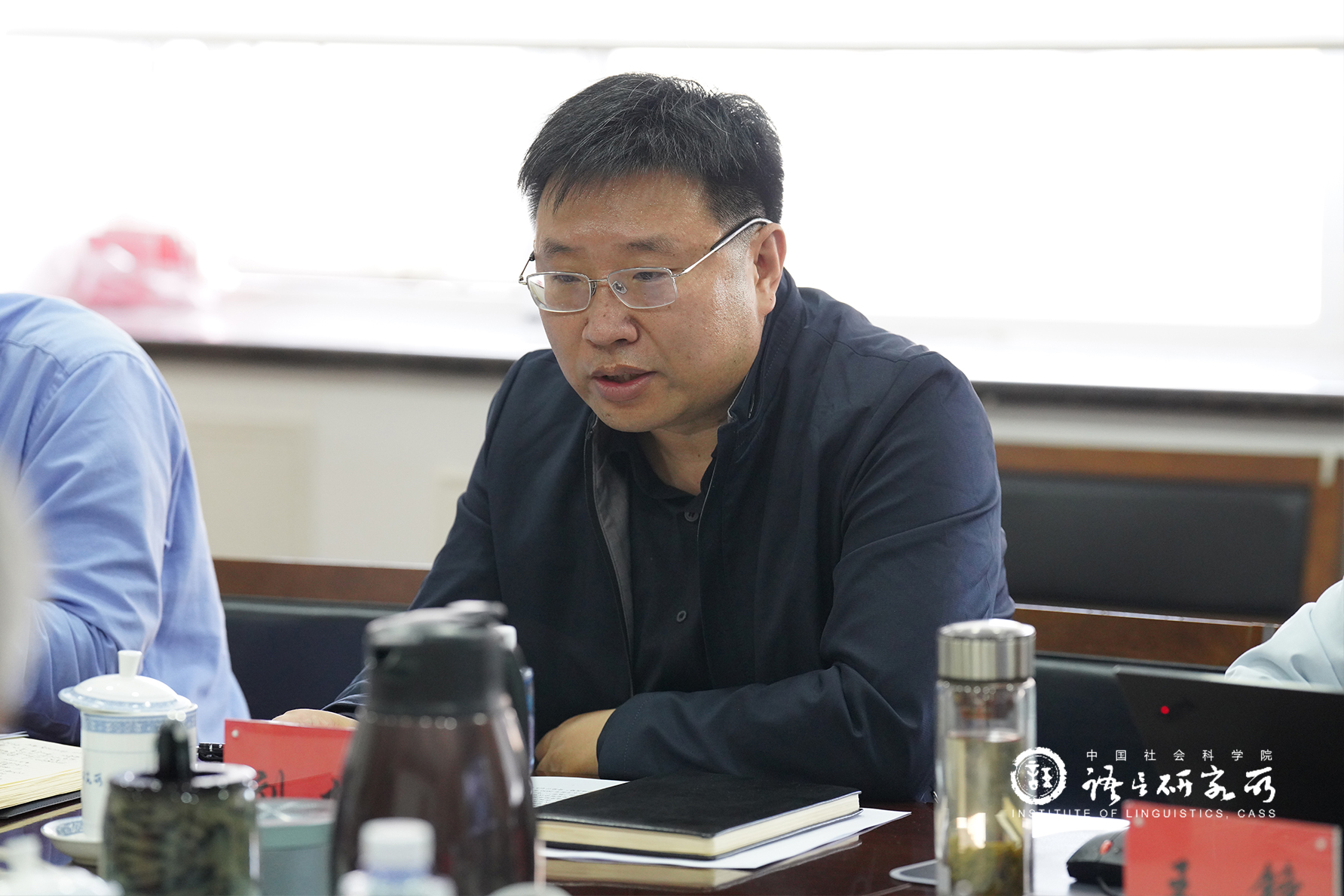 会议分为两个阶段。第一阶段由中国社会科学院语言研究所科研处处长张骅主持。中国社会科学院科研局学部工作一处处长刘杨首先致辞,他在讲话中强调了中国社会科学院党组对扶持“绝学”、冷门学科的高度重视,并对“南方汉字系文字”学科建设寄予厚望,希望项目团队攻坚克难、协同攻关,按照建设目标推进学科体系建设,产出标志性学术成果。