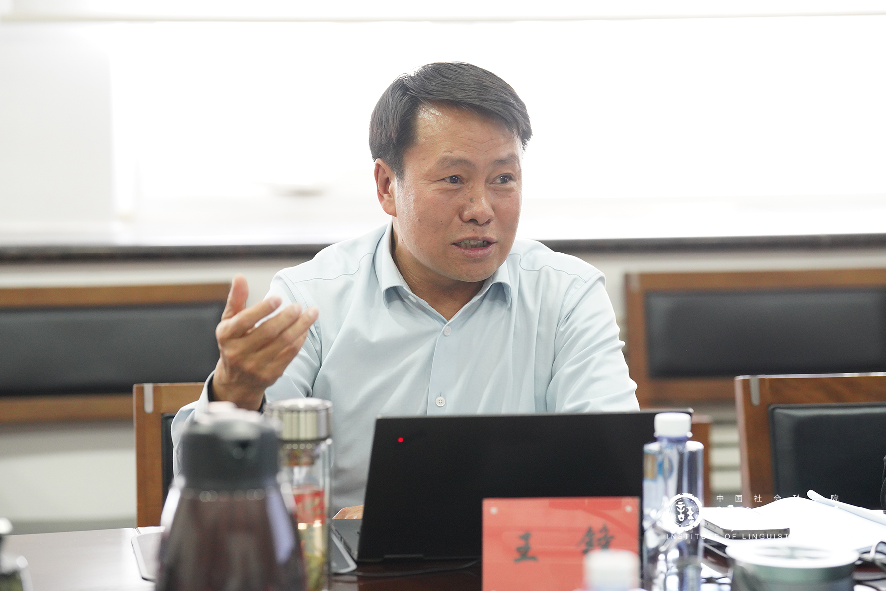 学科负责人、中国社会科学院语言研究所党委副书记、副所长王锋研究员从项目背景、学术基础、创新理念、项目目标、组织支撑等几个方面汇报了学科资助计划的建设思路。他指出,中国社会科学院党组把“南方汉字系文字”学科列入首批“绝学”、冷门学科资助计划予以支持,意义深远,使命光荣。项目基于中国社会科学院深厚的学术传统,坚持创新发展,充分发挥中国社会科学院的“国家队”学术平台和组织作用,构建跨单位、跨领域、老中青结合的研究团队,开展有组织科研,系统推进学科建设工程。项目将以习近平总书记关于语言文字特别是关于汉字的重要论断和重要指示精神为理论引领,提升学术站位,拓展学术视野,进一步深化对汉字符号体系传播流变和创新应用的系统认识,更加深入地认识汉字在中华文明传承发展和中华民族共同体建设中的重要作用,在此基础上强化学科平台建设和人才培养,产出系列性学术成果,为阐释中华文明特性、服务中华民族共同体建设贡献学术力量。