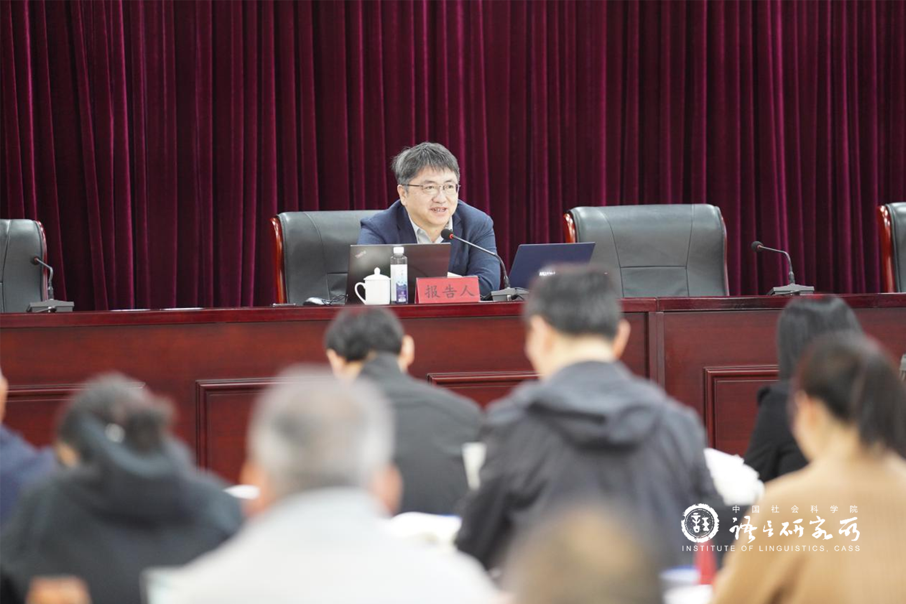 2026年4月11日上午,中国社会科学院语言研究所举办“叔湘讲堂”第六讲。中国社会科学院哲学研究所党委副书记、所长张志强研究员应邀作题为《谈谈我对有组织科研的理解》的学术报告。本场“叔湘讲堂”由语言研究所党委副书记、副所长王锋研究员主持,全所近90名在职人员聆听了报告。