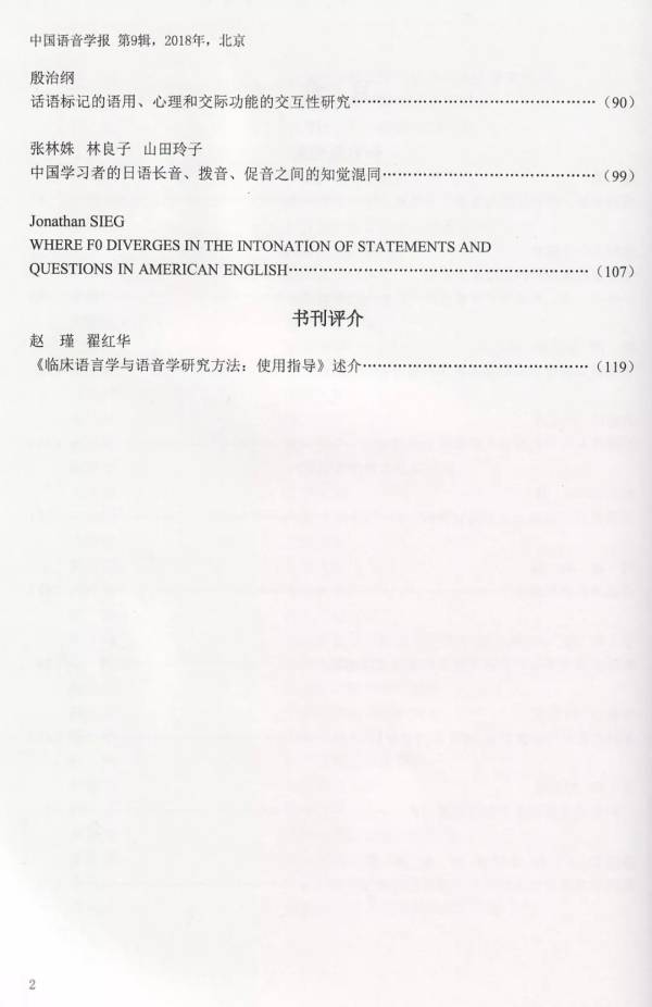 《中国语音学报》第9辑由中国社会科学出版社出版。