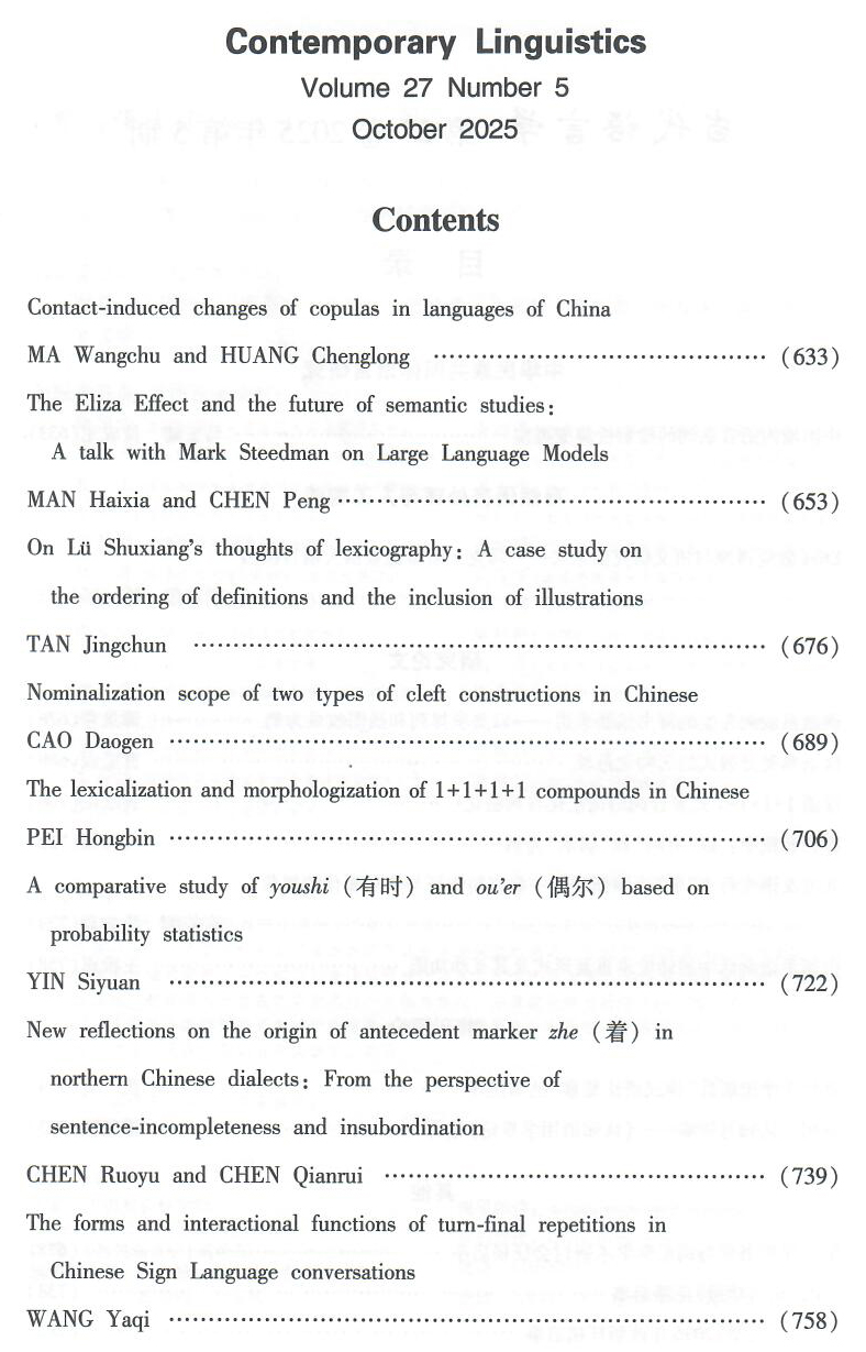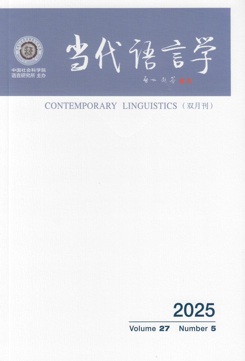 《当代语言学》第27卷2025年第5期于10月15日由社会科学文献出版社出版。