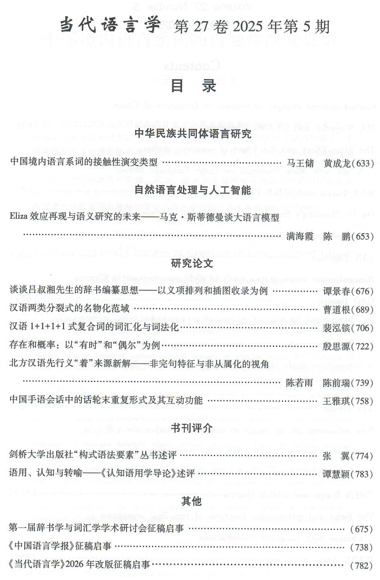 《当代语言学》2025年第5期目录