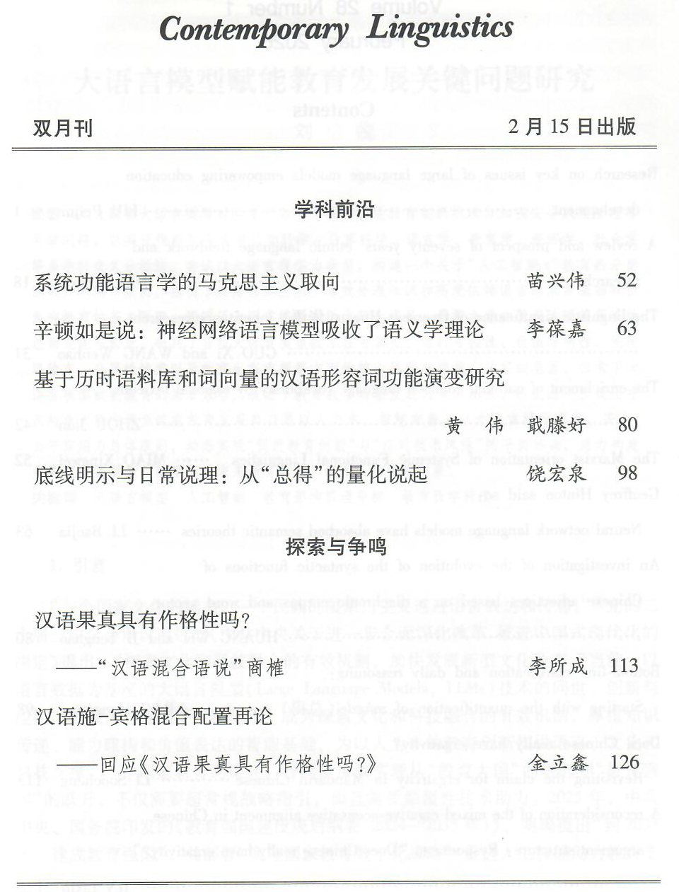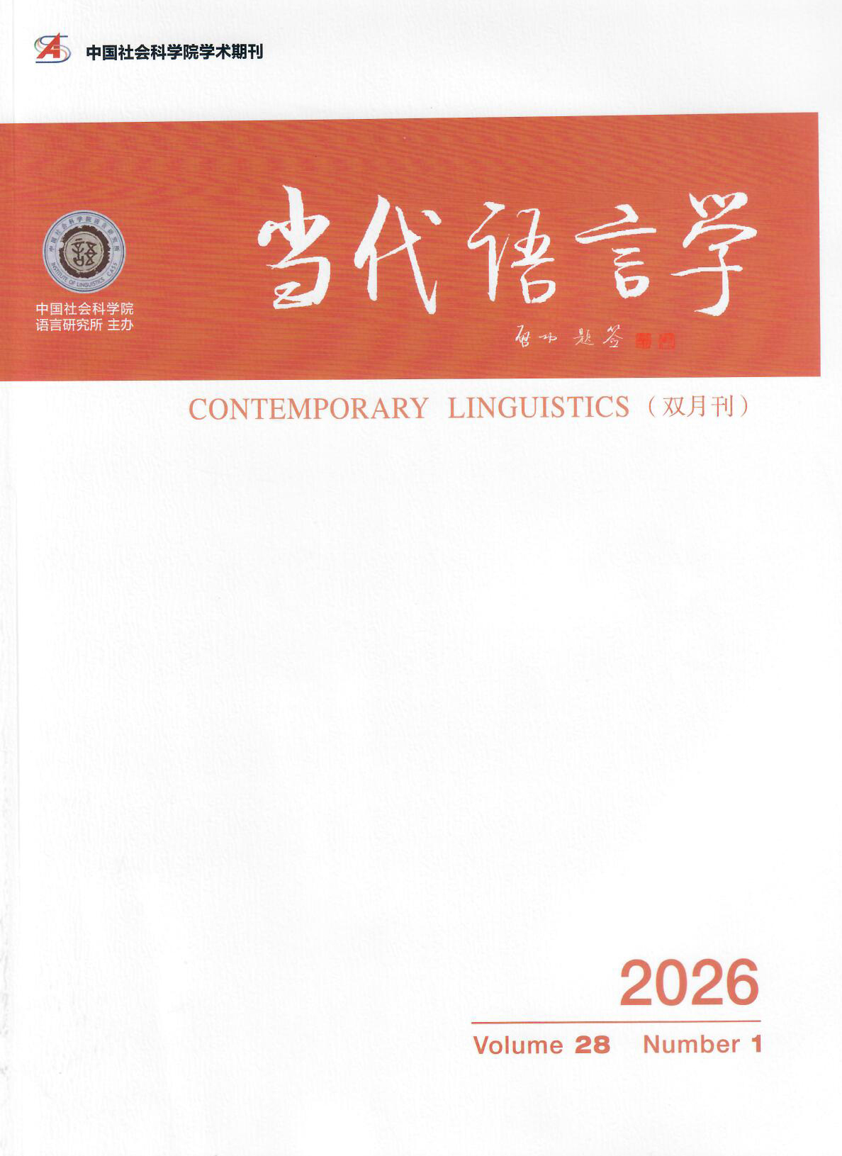 《当代语言学》第28卷2026年第1期于2月15日由社会科学文献出版社出版。
