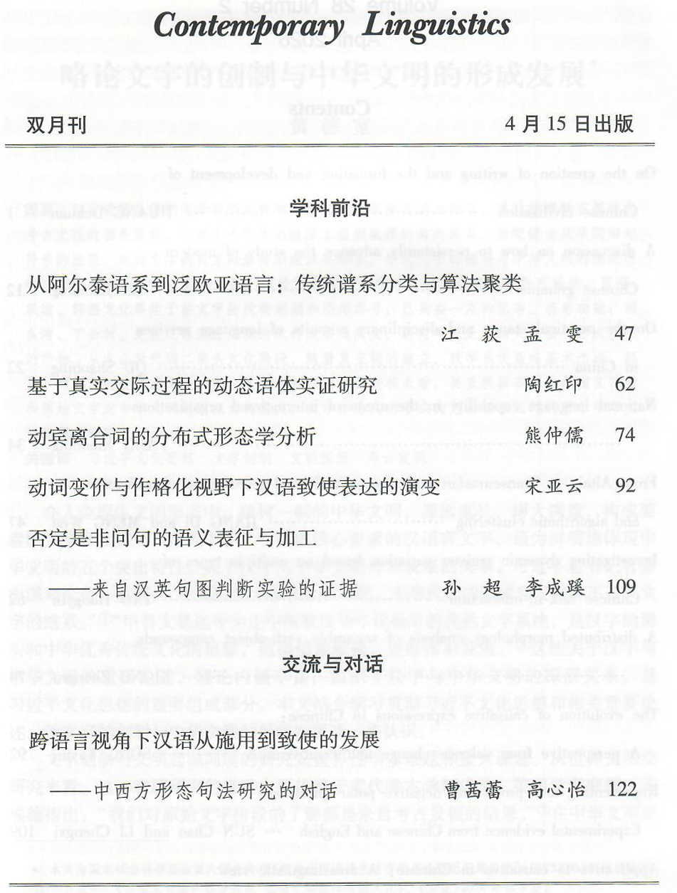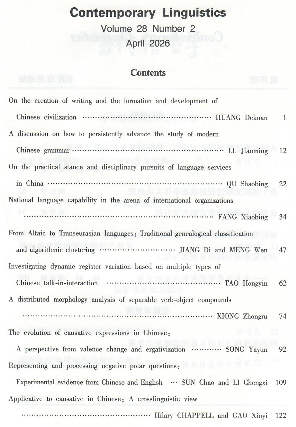 《当代语言学》第28卷2026年第2期于4月15日由社会科学文献出版社出版。