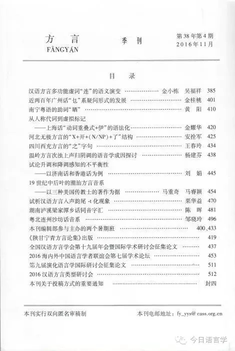 《方言》2016年第4期目录