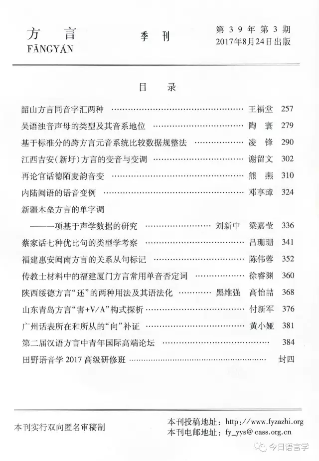 《方言》2017年第3期于8月24日由社会科学文献出版社出版。