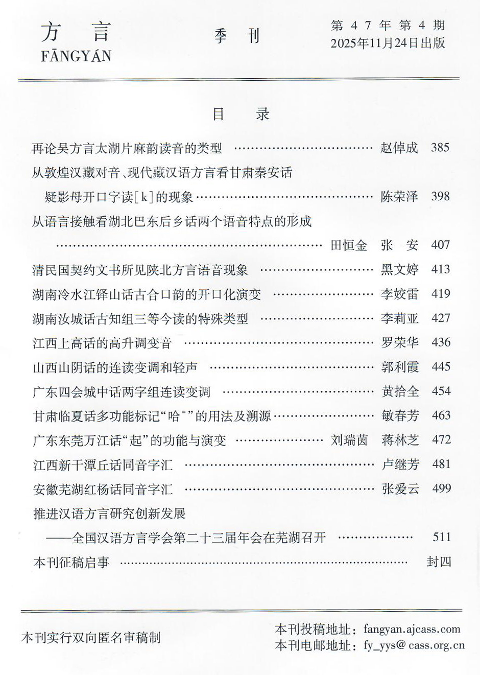 《方言》2025年第4期于11月24日由社会科学文献出版社出版。