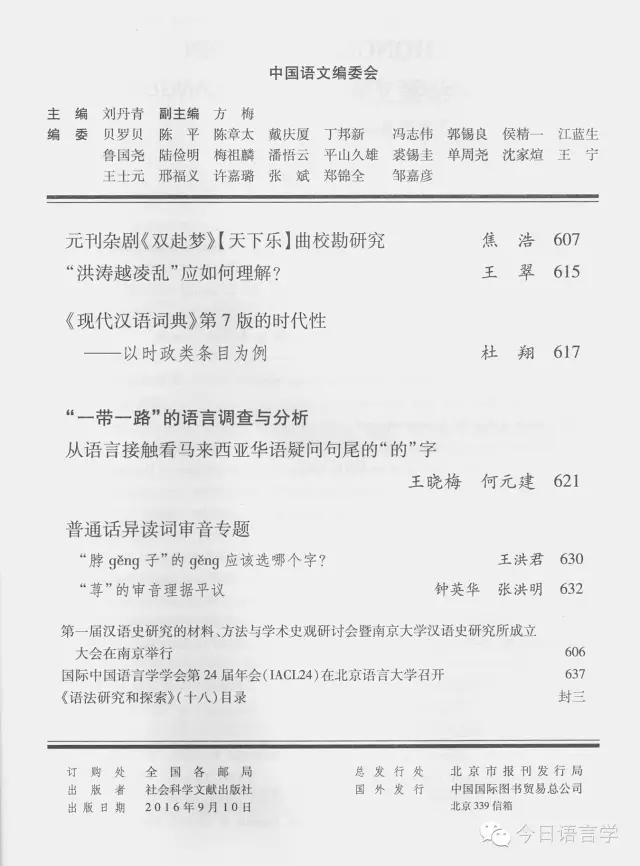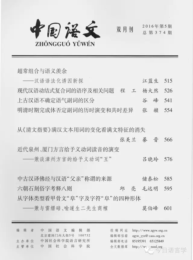 《中国语文》2016年第5期于9月10日由社会科学文献出版社出版。