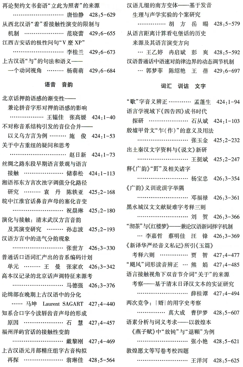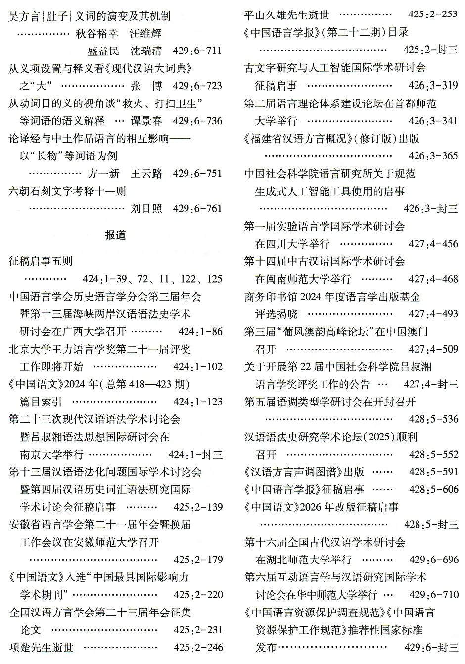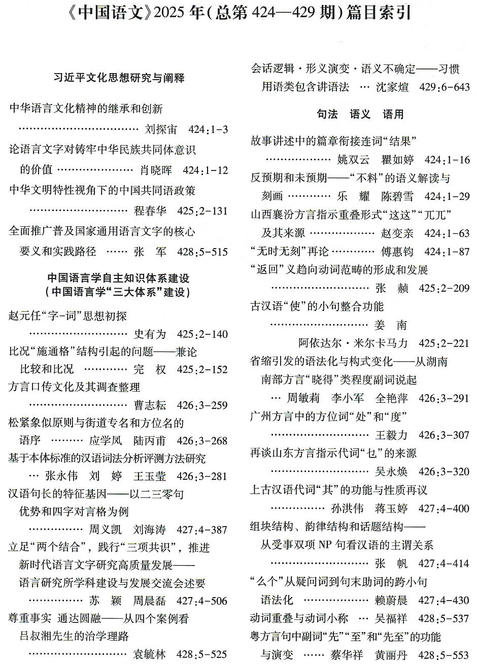 《中国语文》2025年总目录